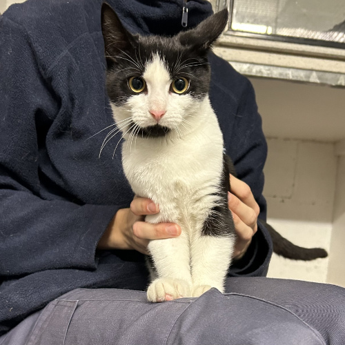 My name is Bourbon and I’m a real little sweetie who’s just arrived from the London hospital. I love to play and would just love another little cat to play with. I love attention but not sure how to enjoy it yet but when I gain a bit of confidence I will sit on your lap. I’d be fine with older children and other cats and when bigger I would love a safe garden to play in.