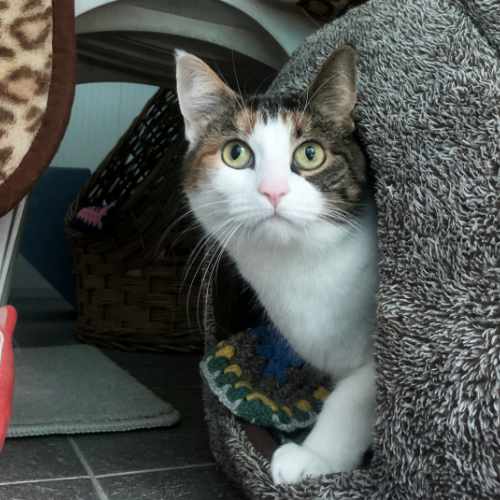 Hi I’m Coco and I came here from the London Hospital. I was a bit shy at first but I’ve settled in well here now and just love lots of fusses. I love kipping in my cosy igloo between fusses and I would like to be the only cat in the home. I’d be very happy in a family home with children of primary school age upwards. Once I have settled in I would love a nice, safe garden to chill out in. Hope to see you for a fuss soon.