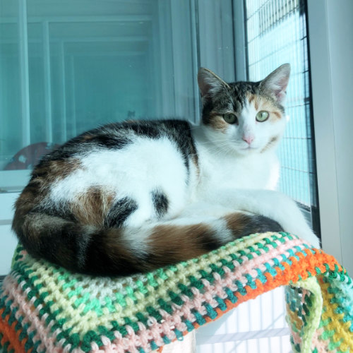 Hi there. We are two delightful sisters called Nancy (tortie and white) and Lucy (black) who are looking for that forever home together. We are both very affectionate and just love a fuss but whereas me, Nancy is a bit cheeky and loves exploring my sister Lucy is a bit more reserved although she does follow my lead! We would be very happy in a family home with children from primary school age upwards and could live with another cat. When settled we would love a nice, safe garden to enjoy. Hope to meet you soon.
